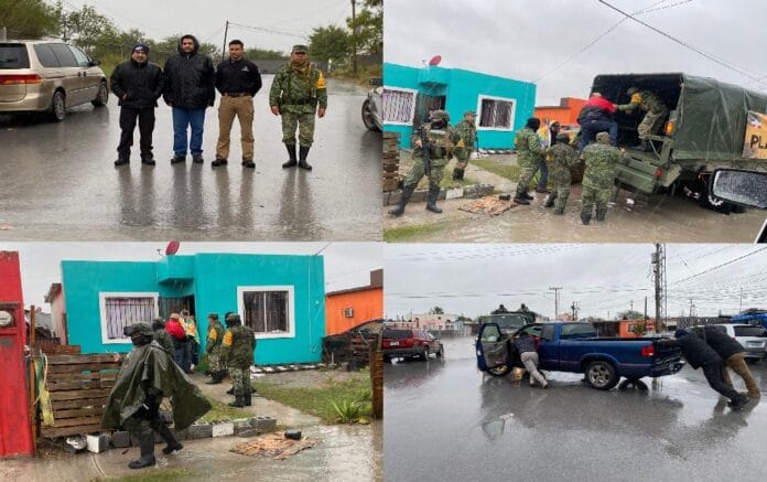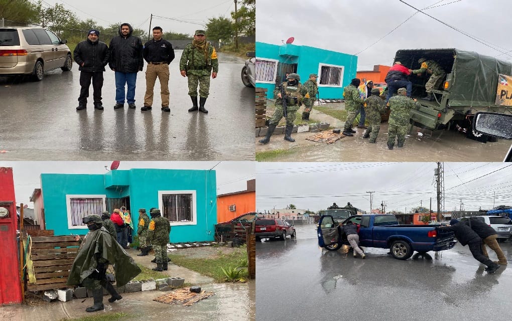 Matamoros.- Desde temprana hora de este martes, elementos de Protección Civil del Gobierno de Matamoros apoyan a los elementos de la Secretaría de la Defensa Nacional y su Plan DN-III-E realizando un recorrido para brindar auxilio a la población que así lo requiera, como consecuencia de las bajas temperaturas y las precipitaciones pluviales que causaron anegamientos en sectores bajos de la ciudad.