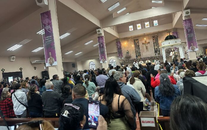 Feligreses acudieron a recibir a las reliquias de San Judas Tadeo, que llegaron al mediodía de este jueves a Matamoros, para permanecer este jueves y parte del viernes en su iglesia, ubicada en el Infonavit Buenavista, donde se implementó un operativo de transito ante el flujo vehicular que se registró por la llegada de feligreses.