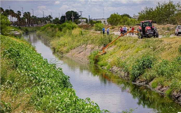 El Secretario de Servicios Públicos Municipales explicó que la Secretaría de Desarrollo Urbano y Ecología registra un avance importante en la limpieza del Dren paralelo al boulevard Manuel Cavazos Lerma, motivo por el cual se trabajará para siempre esté libre de hierba y basura.