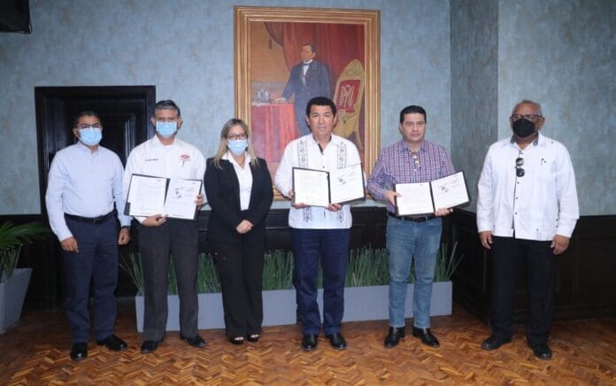 Por parte del Gobierno Municipal estuvieron presentes en la reunión, los Secretarios del Ayuntamiento, Carlos Ballesteros Gálvez y de Desarrollo Urbano y Ecología, Marco Antonio Hernández Acosta, quienes junto con el Alcalde firmaron un convenio de colaboración con la CMIC para capacitación.