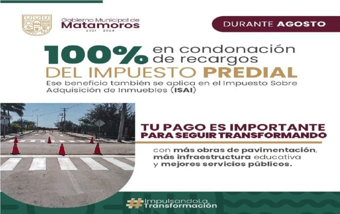 MATAMOROSAplican descuentos en recargos en pago del Predial durante AgostoPor Gricelda Guerra - 10/08/2022036FacebookTwitterPinterestWhatsApp