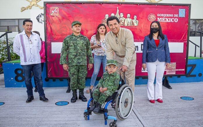 Matamoros.- En una emotiva ceremonia realizada en las instalaciones del Octavo Regimiento de Caballería Motorizado de la Secretaría de la Defensa Nacional en Matamoros, se nombró al pequeño Iker, como “Soldado por un Día”, acto que fue atestiguado por el alcalde Mario Alberto López Hernández y por la presidenta del DIF, Marsella Huerta de López.