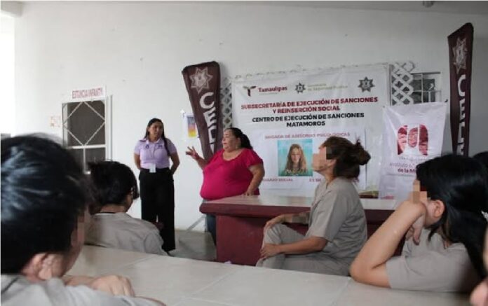 Matamoros, Tamaulipas.- Resultado de la colaboración entre la Secretaría de Seguridad Pública de Tamaulipas (SSPT) y el Instituto Municipal de la Mujer en Matamoros, mujeres privadas de la libertad en el Centro de Ejecución de Sanciones (CEDES) de este municipio recibieron consultas psicológicas.