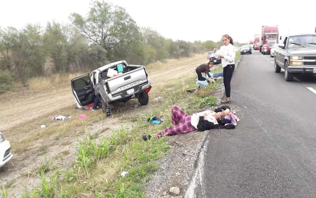 San Fernando.- Dos personas muertas y seis heridos en terrible carambola vehicular registrada hace unos momentos en el km 124 de la carretera federal Matamoros-Victoria a la altura del poblado El Encinal del municipio de Jiménez.