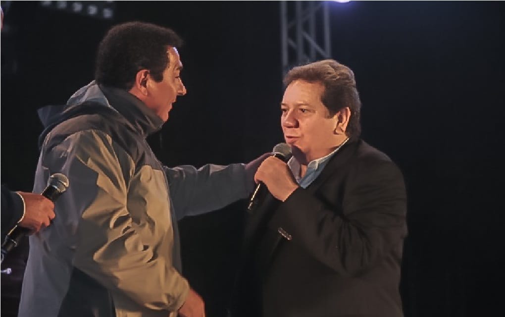 La emoción embargó a los asistentes cuando al salir al escenario “Coque” Muñiz invitó al Presidente Municipal a cantar la famosa canción “La Media Vuelta”, que ambos interpretaron y a la que también se sumó el público presente.