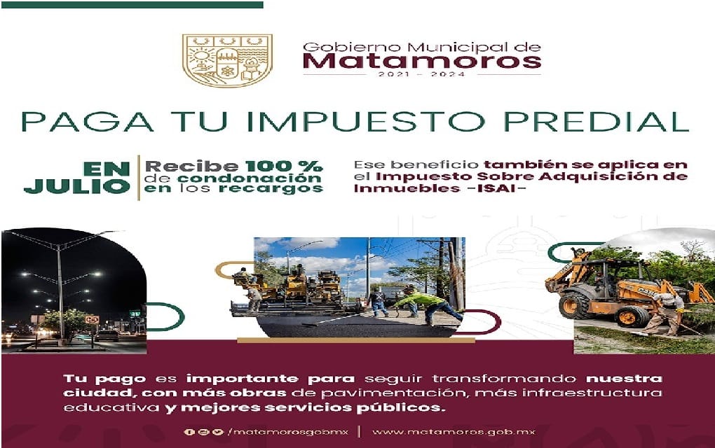 MATAMOROSCondonación en recargos en pago del impuesto predialPor Gricelda Guerra - 24/07/2022066FacebookTwitterPinterestWhatsApp