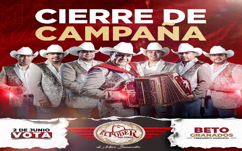 El candidato por Morena a la Alcaldía de Matamoros, Beto Granados; confirmó este día a través de sus redes sociales que la agrupación musical El Poder del Norte participará en su cierre de campaña; el cual se realizará el próximo 29 de mayo.
