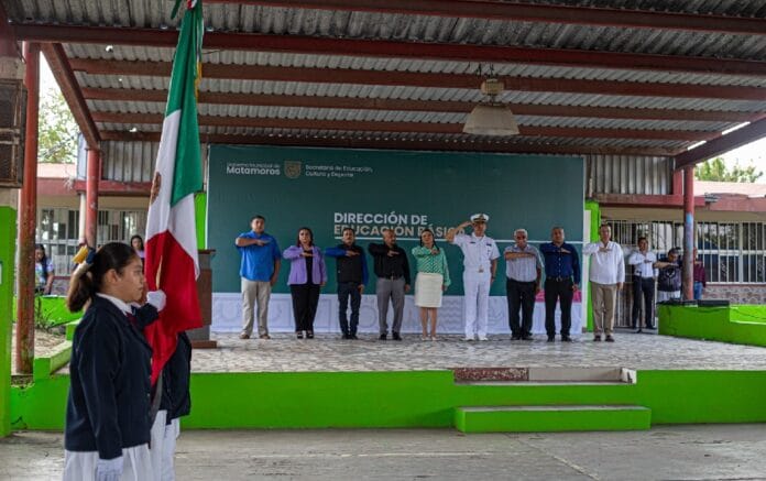 En la ceremonia que se realizó esta mañana en la escuela primaria Cuauhtémoc ubicada en la Avenida Roberto Guerra, participaron autoridades educativas, civiles y militares; también se contó con la presencia de padres de familia.