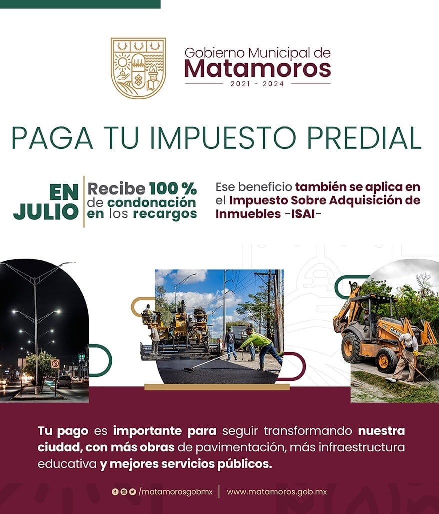 MATAMOROSDescuento de recargos en pago del impuesto predialPor Gricelda Guerra - 31/07/2022072FacebookTwitterPinterestWhatsApp