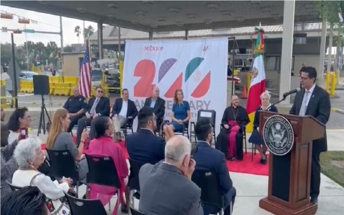 Matamoros.- Con la representación del Gobierno de Matamoros, este lunes el Secretario del Ayuntamiento, Carlos Ballesteros Gálvez participó en dos ceremonias realizadas en Brownsville, Texas para conmemorar los 200 años del inicio de las relaciones diplomáticas entre México y los Estados Unidos.