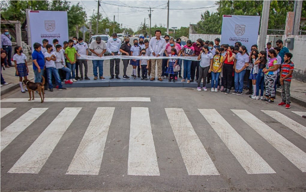 Al dirigirse a los vecinos, López Hernández dijo que el Gobierno de Matamoros está dando prioridad a la pavimentación de accesos a las escuelas, en un acto de justicia para que los niños ya no caminen más entre calles lodosas.
