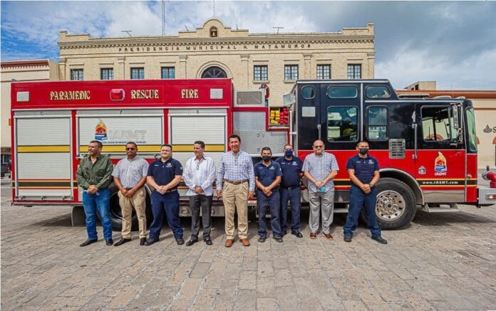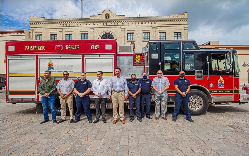 Matamoros.- El alcalde Mario Alberto López Hernández entregó al heroico cuerpo de Bomberos una unidad equipada con bomba de agua, dos quijadas de la vida, así como otros instrumentos que vienen a fortalecer el equipamiento de la corporación, en beneficio de la población que requiera auxilio.
