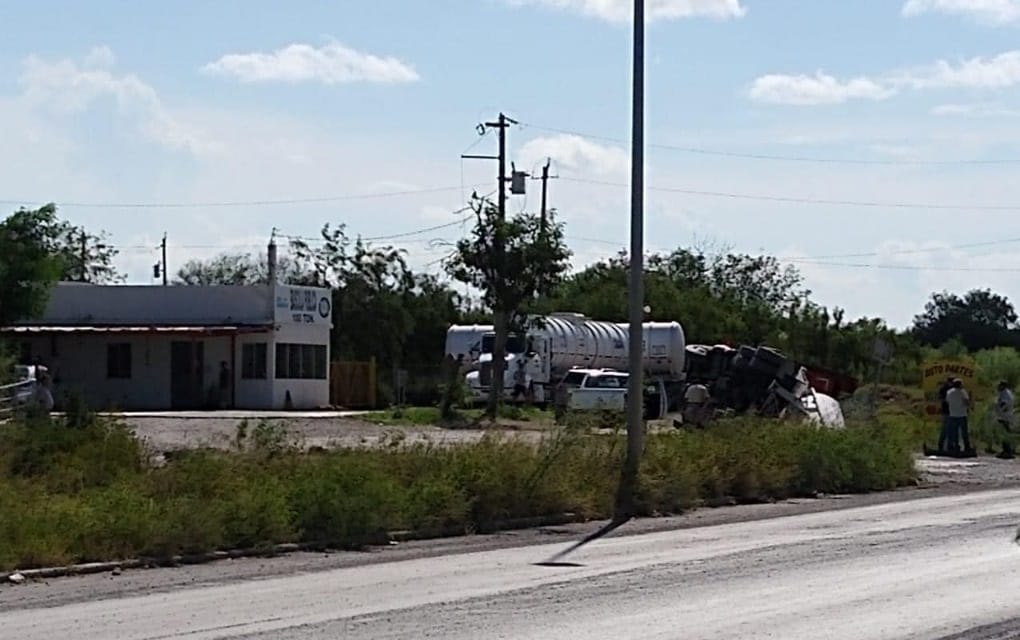 Por razones que se desconocen, el conductor del tráiler cargado con miles de litros de Etileno perdió el control del volante cuando se desplazaba por el libramiento Emilio Portes Gil, en Matamoros.