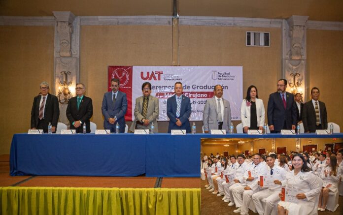 Este viernes, autoridades del Municipio de Matamoros participaron en la ceremonia de graduación de la carrera de Médico Cirujano, Generación 2019-2024, de la Facultad de Medicina de la Universidad Autónoma de Tamaulipas.