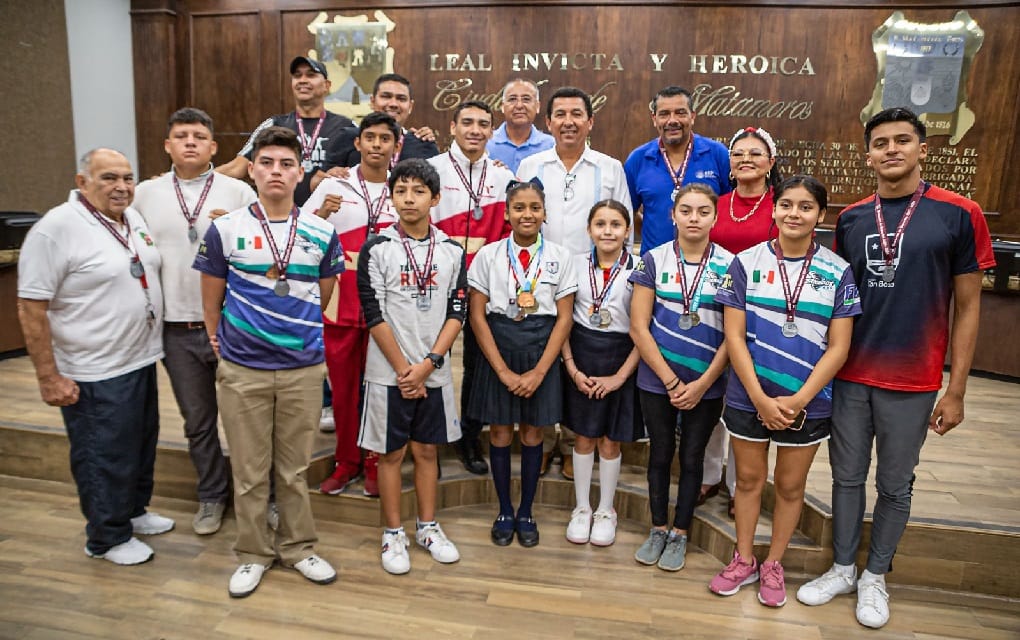 El alcalde Mario López impuso medallas a cada uno de los campeones, en agradecimiento por llevar el nombre de Matamoros a escenarios estatales, naciones e internacionales.
