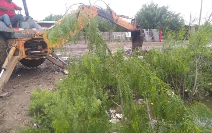 Matamoros.- Para facilitar el desagüe de las colonias con riesgo de anegación, el Gobierno de Matamoros a través de la Secretaría de Desarrollo Urbano y Ecología trabaja en el retiro de tapones formados por tierra o por basura en algunos de los drenes de la ciudad.