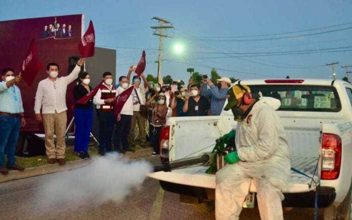 Al trabajo de descacharrización, se suma también una campaña de fumigación, acción que se realiza en apoyo a la Tercera Jurisdicción Sanitaria y cuya finalidad es la prevención de la salud de las familias matamorenses.