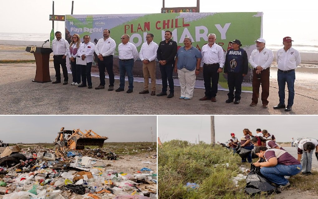 H. Matamoros, Tamaulipas.- El presidente municipal Beto Granados encabezó el inicio de la Estrategia Nacional de Limpieza de Playas en Matamoros, con la participación activa de la sociedad civil, instituciones educativas y trabajadores de dependencias municipales. En Playa Bagdad se desplegó un esfuerzo colectivo para atender 23 kilómetros lineales de costa, donde estudiantes y autoridades se sumaron en una jornada de colaboración y conciencia ambiental.