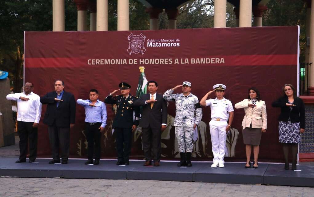 Acompañaron en el presídium al Presidente Municipal: el General Brigadier Estado Mayor Antonio Ramírez Escobedo, comandante de la Guarnición de la Plaza; el Capitán de Navío Alejandro Rangel Sánchez, coordinador de la Guardia Nacional en Matamoros; Teniente de Fragata Alejandro Vega González, representante del Sector Naval.