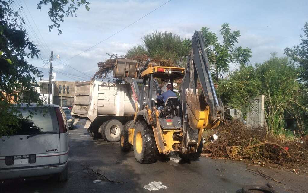 Empleados de la citada dependencia municipal atienden las diversas rutas asignadas para la recolección de basura, pero también intensifica las labores de recolección de ramas y basura que arrastran las lluvias, para lo cual utiliza equipo de maquinaria pesada, como trascabos y camiones de volteo.
