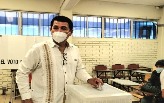 Cumpliendo con su deber ciudadano, este domingo el alcalde Mario Alberto López Hernández emitió su voto en la casilla marcada con el número 0634, ubicada en el Cobat 02.