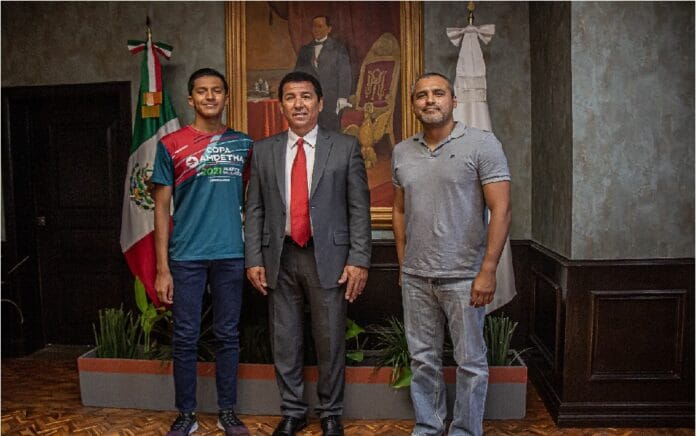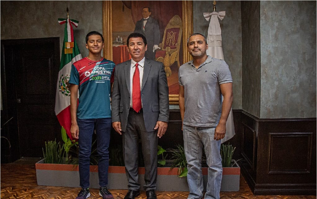 Por sus destacados logros, el alcalde Mario Alberto López Hernández felicitó a nombre del pueblo de Matamoros al campeón nacional, quien en la última competencia del Caribe obtuvo dos medallas de oro y una de bronce.