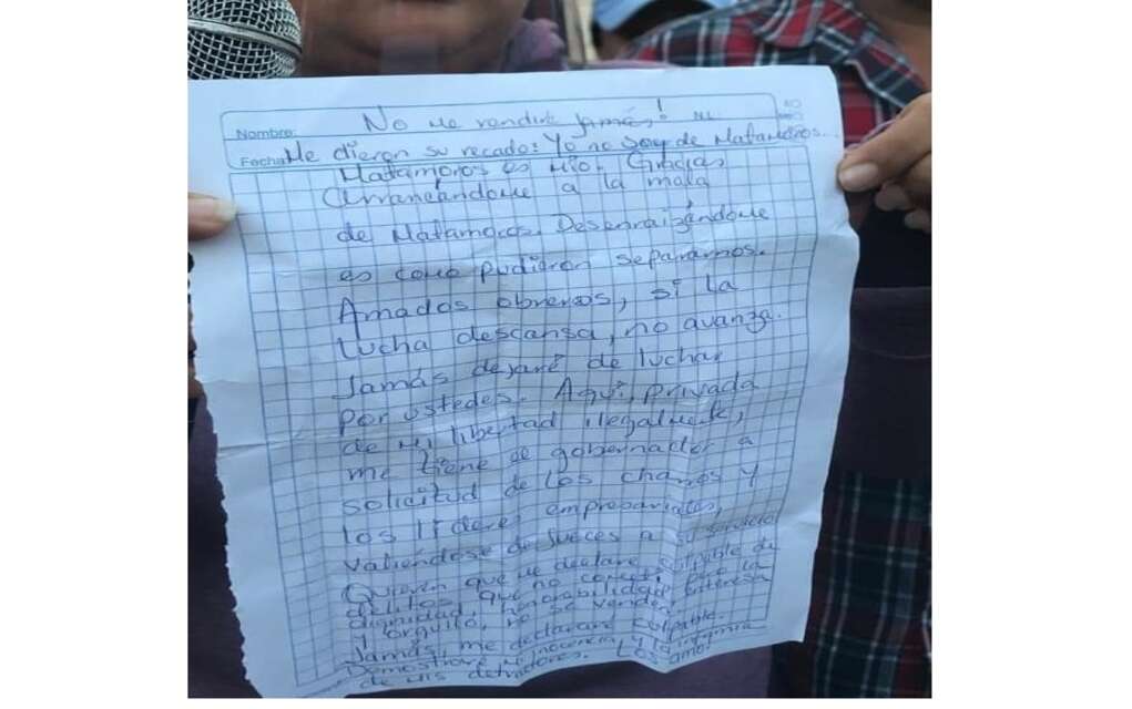 Llegando a la Plaza donde ya eran esperados por más simpatizantes de la abogada, donde después de la participación de varios oradores, finalmente llegó la carta enviada por la abogada detenida en el penal de Ciudad Victoria, la que fue dada a conocer.