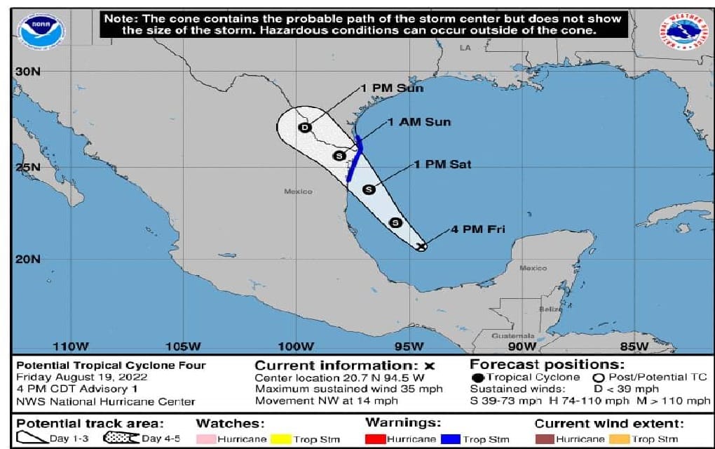 Matamoros.- Ante la posibilidad de que la hoy depresión tropical se convierta en las próximas horas en tormenta tropical “Danielle” y que de acuerdo a su trayectoria impacte entre Carboneras del Municipio de San Fernando y el Puerto El Mezquital, el Gobierno de Municipal está preparado para brindar ayuda a la población, pues los efectos también se podrían sentir en Matamoros.