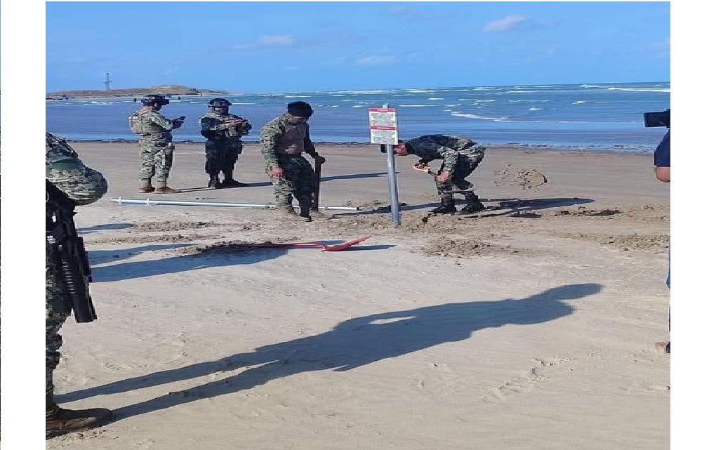 Matamoros, Tamaulipas. — Este lunes por la mañana, personal de la Secretaría de Marina retiró seis señaletas colocadas de forma ilegal en la zona de Boca del Río, dentro del territorio mexicano. Horas antes, un grupo de personas llegó en lancha desde el lado estadounidense y colocó los letreros sin identificarse ni contar con autorización.