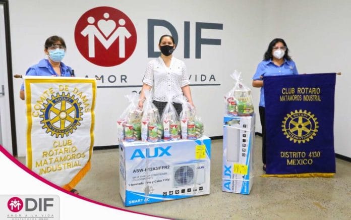 La Presidenta del Sistema DIF Matamoros Marsella Huerta de López, agradeció al Club Rotario Matamoros Industrial del Distrito 4130 que preside el Dr. Miguel Treviño, por la donación de un mini Split de una tonelada y despensas en beneficio de los abuelitos con Alzheimer.