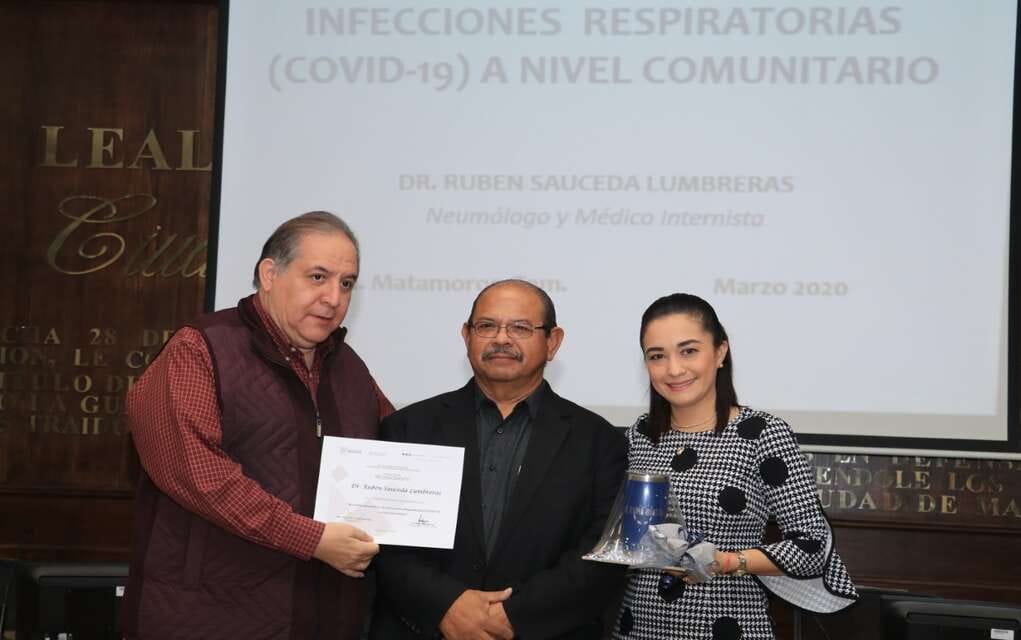 El Dr. Rubén Sauceda Lumbreras, Neumólogo y Médico Internista, fue el encargado de desarrollar esta plática con funcionarios municipales, advirtiendo del grave peligro que representa el desconocer la información necesaria para evitar el contagio.