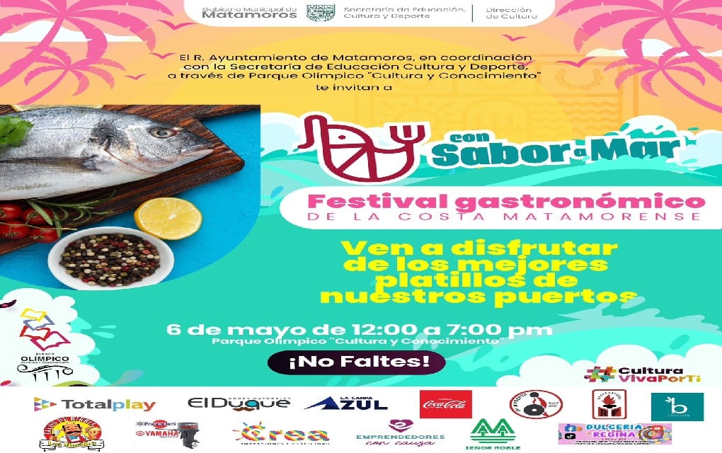 Matamoros.- Debido a que el pronóstico del clima marca para el próximo sábado la presencia de lluvias en la ciudad, los organizadores del Festival Gastronómico de la Costa Matamorense “Con Sabor a Mar”, determinaron posponer el evento y realizarlo el 6 de mayo, informó Viridiana Villasana Aguilar.