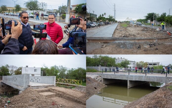 Uno de los cuatro puentes vehiculares construidos por el Gobierno de Matamoros en beneficio de los matamorenses, ubicado en la calle Guadalupe Blanco y Zafiro de las colonias Abelardo de la Torre y La Joya, también fue visitado por el Presidente Municipal Interino.