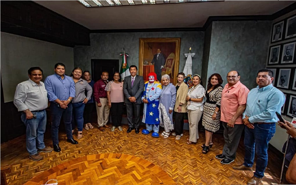 En un encuentro que encabezó el Presidente Municipal, Mario Alberto López Hernández y con la presencia de la gran mayoría de los integrantes del Cabildo, el reconocido y carismático payaso firmó el libro de visitantes distinguidos.