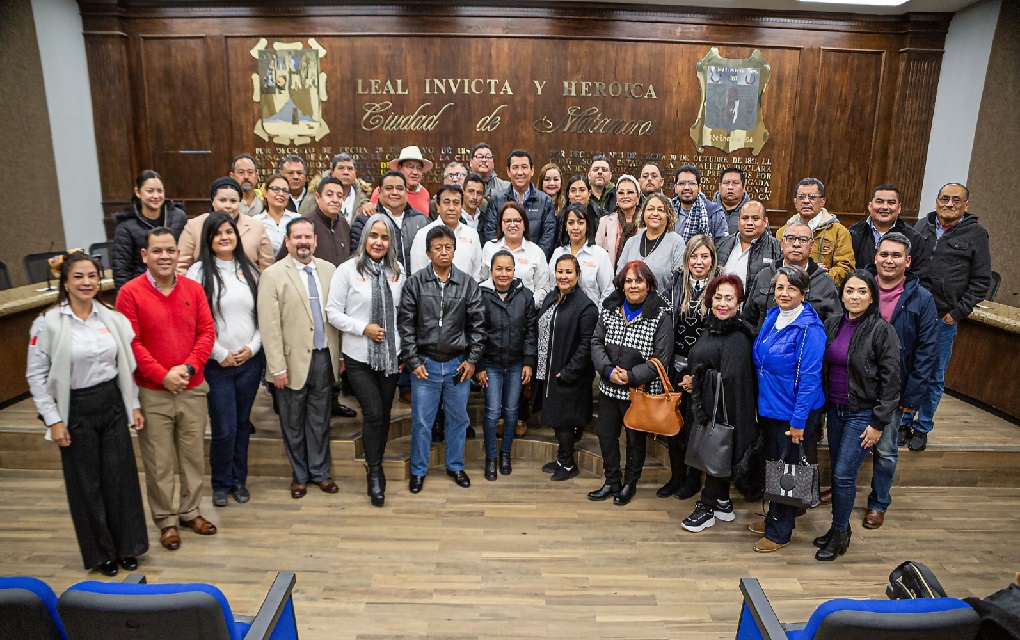 En el encuentro con los líderes sindicales, el Presidente Municipal fue acompañado por la Secretaria de Educación, Cultura y Deporte, Genoveva Hi González.