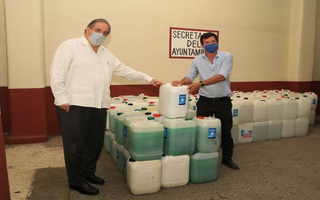 A nombre del Alcalde, el Secretario del Ayuntamiento agradeció la donación consistente en 2 mil litros de gel antibacterial, mil 500 litros de jabón y 200 litros de cloro que serán entregados a las familias de Matamoros, así como también a la Secretaría de Salud Municipal para las acciones que realiza para contener el coronavirus.