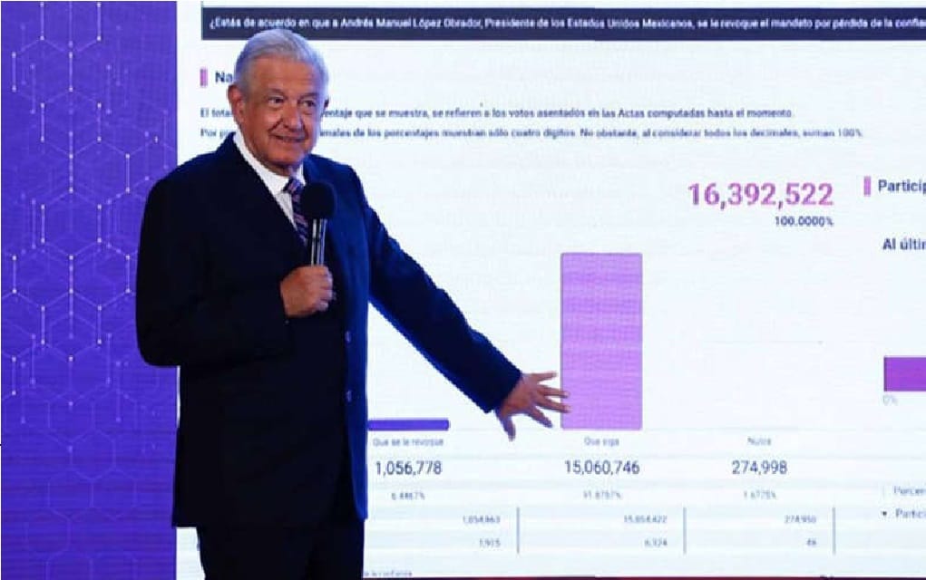 En Chiapas un millón 051 mil votaron por la permanencia del mandatario; Veracruz, un millón 511 mil votos; Guerrero, 567 mil votos; Oaxaca, 645 mil votos; la Ciudad de México, un millón 502 mil votos.