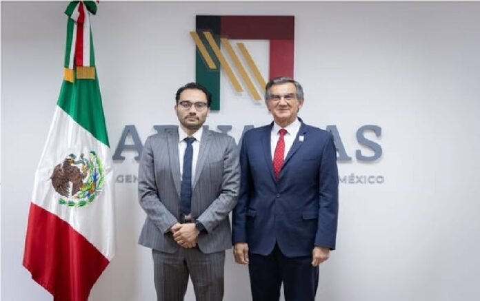 Ciudad de México.- El gobernador de Tamaulipas, Américo Villarreal Anaya, presentó al nuevo titular de la Agencia Nacional de Aduanas de México, Héctor Alonso Romero Gutiérrez, los proyectos estratégicos como el Puerto Interior de Tamaulipas y la Administración Portuaria Integral de Matamoros, que siguen avanzando de la mano del Gobierno de México, que encabeza la presidenta Claudia Sheinbaum, para generar desarrollo y bienestar para las y los tamaulipecos.