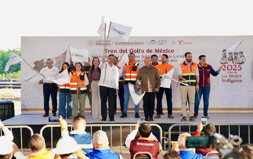Acompañado por Jesús Antonio Esteva Medina, secretario de Infraestructura, Comunicaciones y Transportes, y Andrés Lajous Loaeza, titular de la Agencia Reguladora del Transporte Ferroviario, el mandatario tamaulipeco dio la bienvenida a esta obra de gran calado, que permitirá la generación de 10 mil 922 empleos directos y 32 mil 766 empleos indirectos.