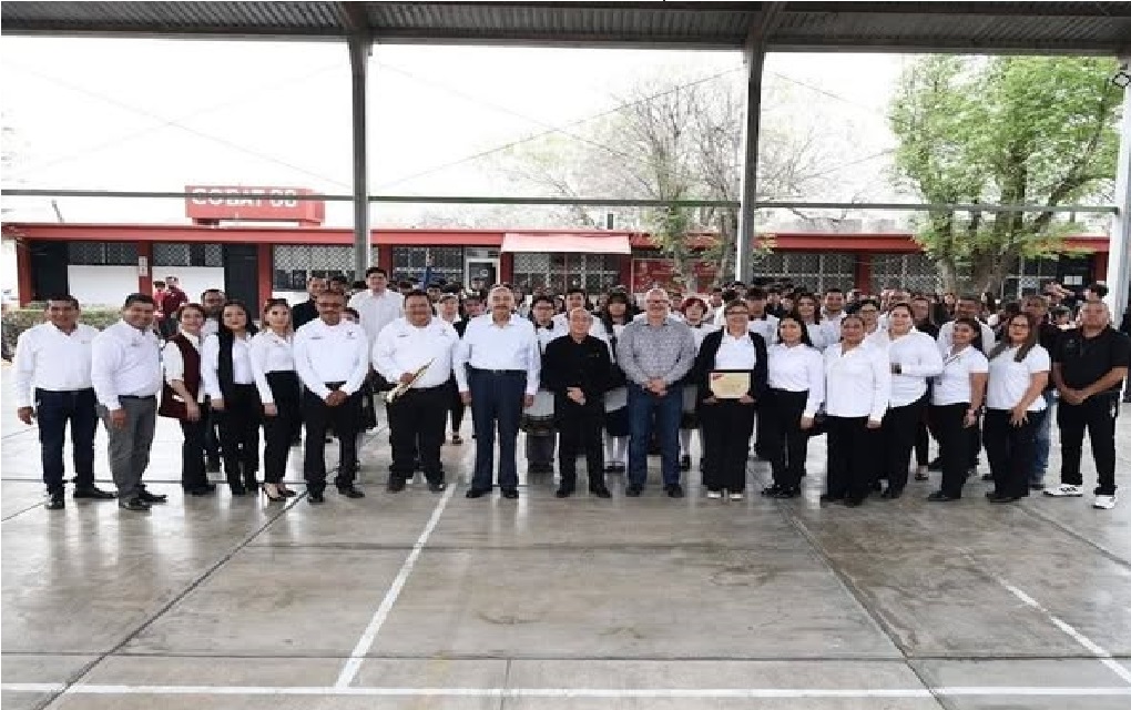 En ceremonia de honores a la bandera que incluyó la entrega de instrumentos para banda de guerra y reconocimientos al personal por su trayectoria laboral, el titular del COBAT resaltó la dedicación de la planta docente de la institución y el compromiso que tienen con la formación de las y los jóvenes, al contar con 64 centros educativos y atender a más de 18 mil 700 estudiantes en todo Tamaulipas.