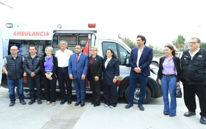 Tras constatar el avance de la instalación en las diferentes áreas y módulos donde se brindará una atención integral y humanista a connacionales repatriados, el gobernador, en compañía de la presidenta del DIF Tamaulipas, doctora María de Villarreal, entregó una ambulancia a este Centro de Atención, la cual fue recibida por Leslie Garza, coordinadora de Primera Acogida a Migrantes por parte del DIF Estatal.