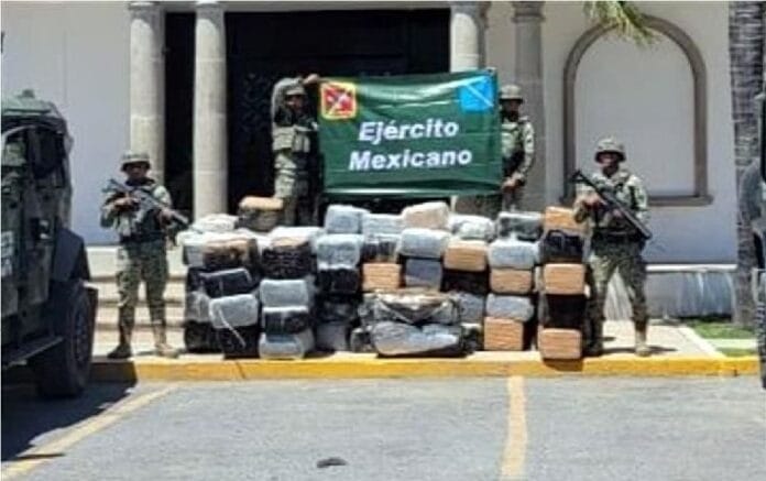 Nuevo Laredo, Tamaulipas.- El Ejército Mexicano decomisó alrededor de una tonelada de mariguana en la Colonia Valles de Anáhuac, en Nuevo Laredo. Según informes, los militares recibieron el reporte de sujetos sospechosos armados que bajaban paquetes cuadriculados de una camioneta en la colonia mencionada.