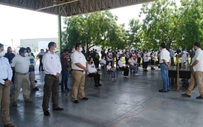 Reynosa.- Despiden al paramédico Juan Ramón Solís Vega, fallecido de COVID, lo anterior, por elementos de la corporación Protección Civil Regional y Cruz Roja.