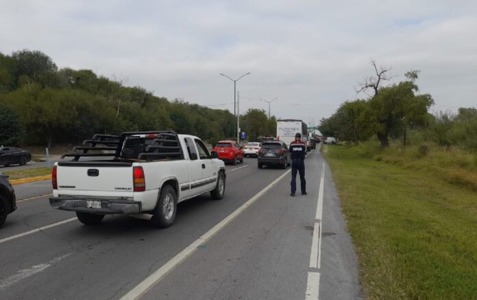 NUEVO LAREDO, Tam .— En una acción conjunta, personal de Tránsito, Protección Civil y Guardia Municipal se despliega estratégicamente en el bulevar Colosio para mejorar la vialidad hacia el Puente Internacional Juárez-Lincoln.