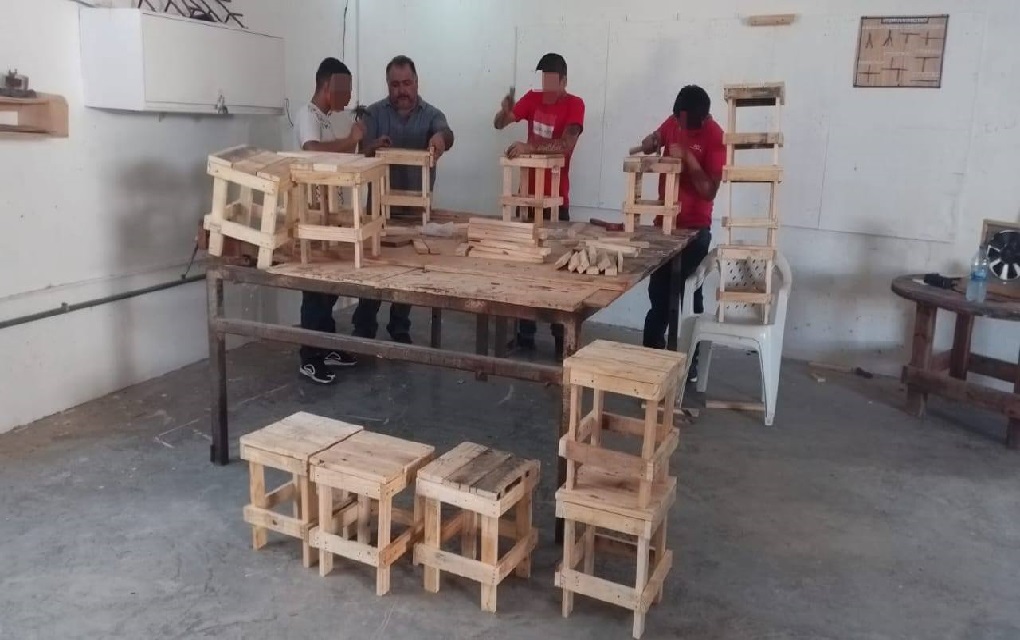 Reynosa, Tamaulipas.- Como una forma de emplear los conocimientos adquiridos en el Taller de Carpintería impartido en el Centro Regional de Ejecución de Medidas para Adolescentes en el municipio de Reynosa, y a la vez, fomentar el humanismo como factor para prevenir la reincidencia delictiva, menores de edad en externamiento elaboraron y donaron 80 sillas de madera a la Casa del Migrante ‘’Senda de Vida’’.
