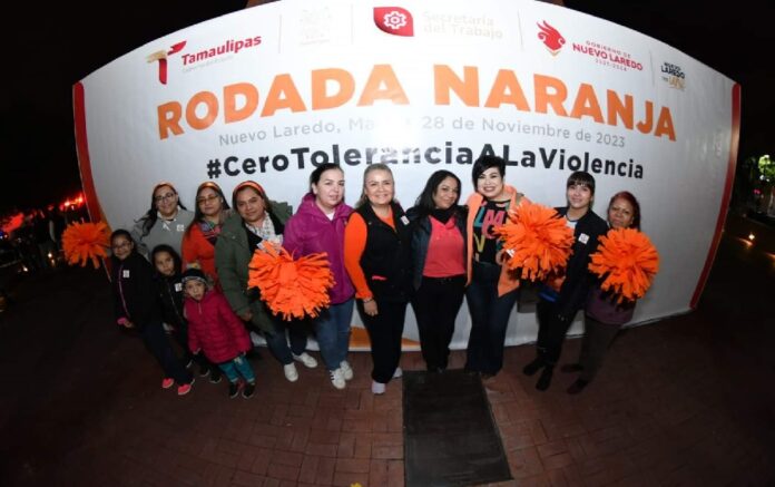 Nuevo Laredo, Tamaulipas.- El Gobierno de Nuevo Laredo, en coordinación con la Secretaría del Trabajo y Previsión Social del Gobierno de Tamaulipas, realizaron una rodada naranja, para recordar la importancia de espacios libres de violencia contra las mujeres en los ámbitos laborales, familiares, sociales y públicos.
