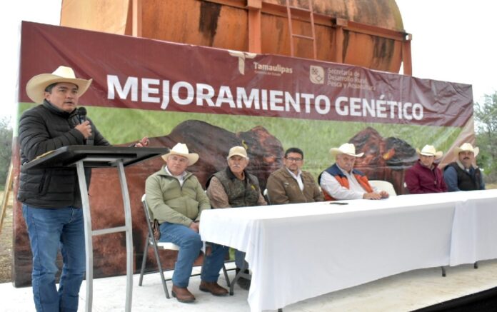 Burgos, Tamaulipas.– Con la finalidad de aumentar la calidad genética y darle mayor valor agregado a la producción de los hatos ganaderos de Tamaulipas, la Secretaría de Desarrollo Rural, Pesca y Acuacultura llevó a cabo el Programa para el Fortalecimiento del Subsector Ganadero 2023 en el municipio de Burgos, donde se ofertaron 50 sementales bovinos, 25 ovinos y 25 caprinos.