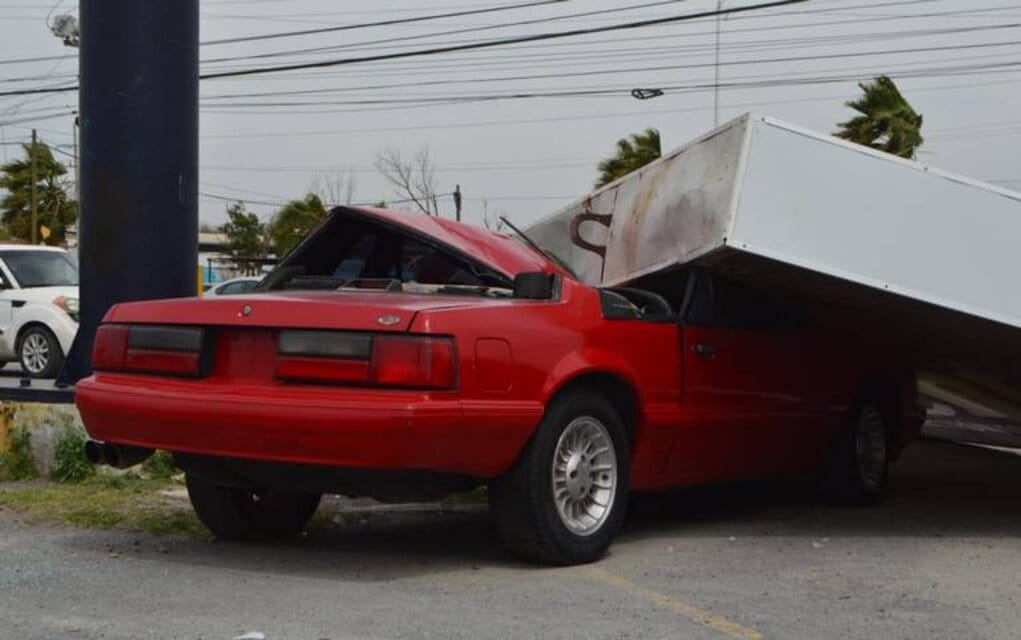 Asimismo un anuncio panorámico que estaba a una altura de aproximadamente seis metros cayó sobre un coche clásico Ford Mustang de color rojo, mismo que estaba en el estacionamiento del centro comercial Soriana San Fernando.