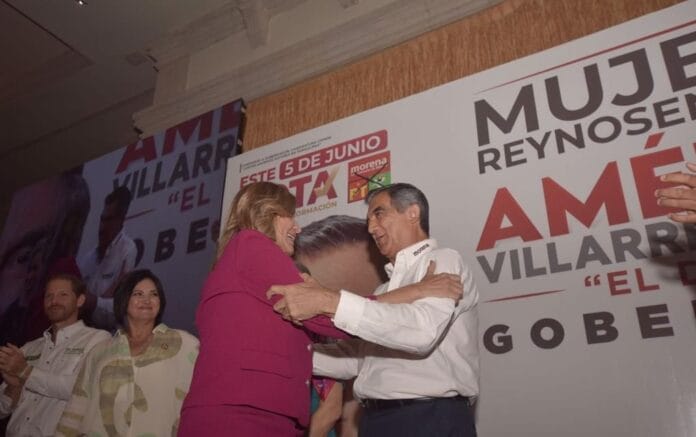 REYNOSA, Tam.- Fue en un encuentro con mujeres de Reynosa, donde el doctor Américo Villarreal Anaya y Maki Ortiz se fundieron en un abrazo y llamaron a cambiar el miedo por la esperanza para que llegue la transformación a Tamaulipas, porque no podemos seguir seis años más con la misma forma de gobierno.