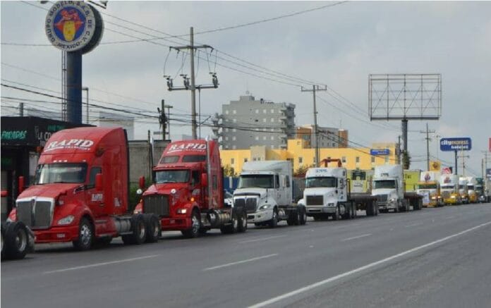 Los camioneros formaron una larga fila de unidades para manifestarse contra el gobierno municipal de Reynosa, por abusos de autoridad cometidos principalmente por los efectivos de tránsito y vialidad.